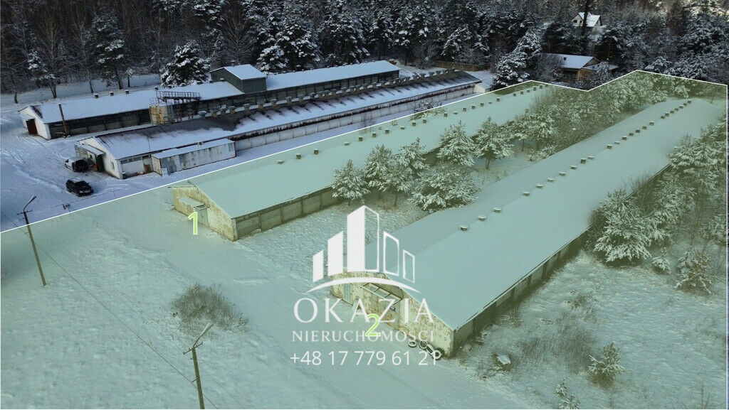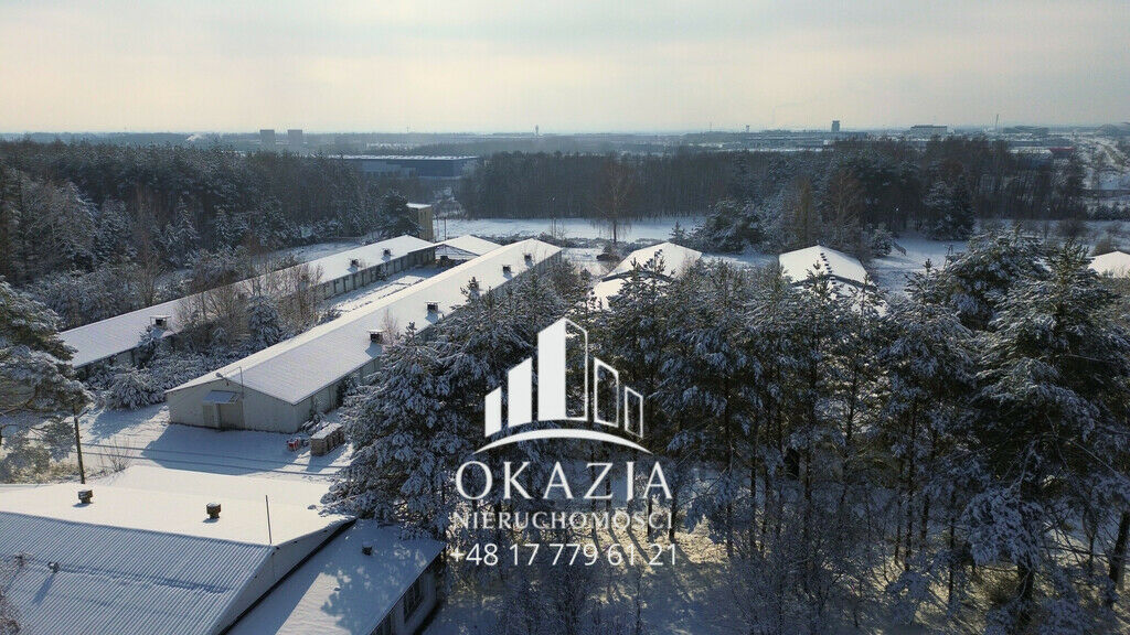 Na działce znajduje się 6 budynków magazynowych, utwardzony parking